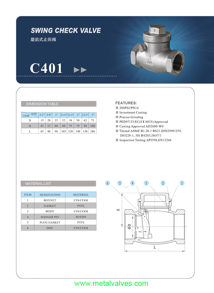 SWING CHECK VALVE THREADED