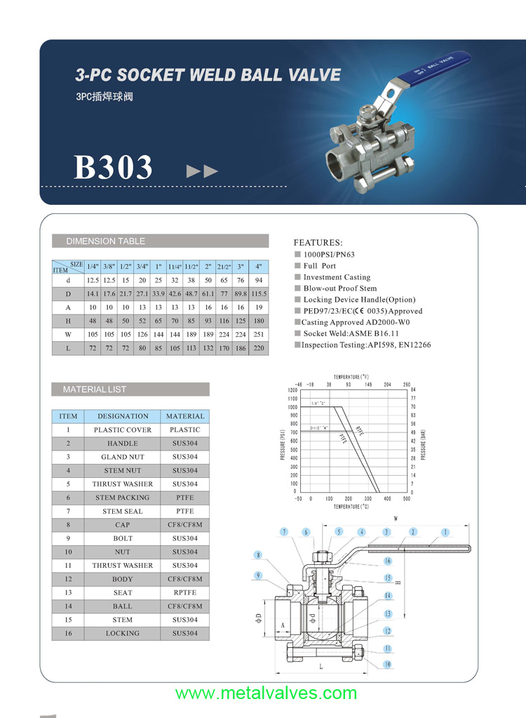 3PC SOCKET WELDED BALL VALVE