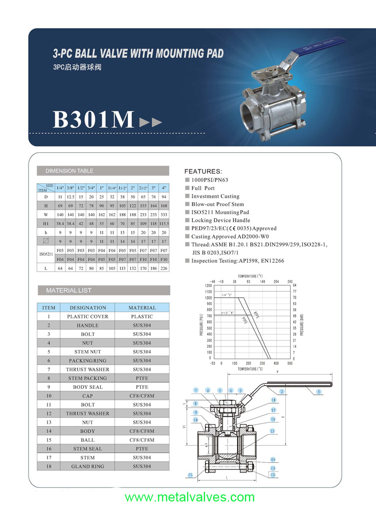 3PC THREADED BALL VALVE WITH MOUNTING PAD